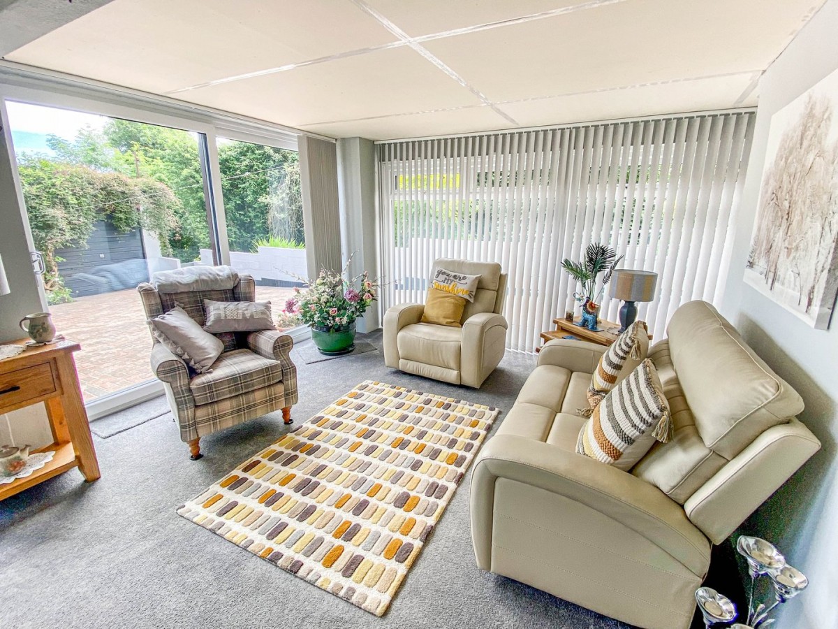 Versatile room which is flooded with natural light via PVCu double glazed window to one side stretching from floor to ceiling and large PVCu double sliding doors to both sides giving access onto the rear garden benefiting from views over the surrounding mountains. Emulsioned walls and part fitted carpet/part plastic thermo tiled flooring. Power installed.