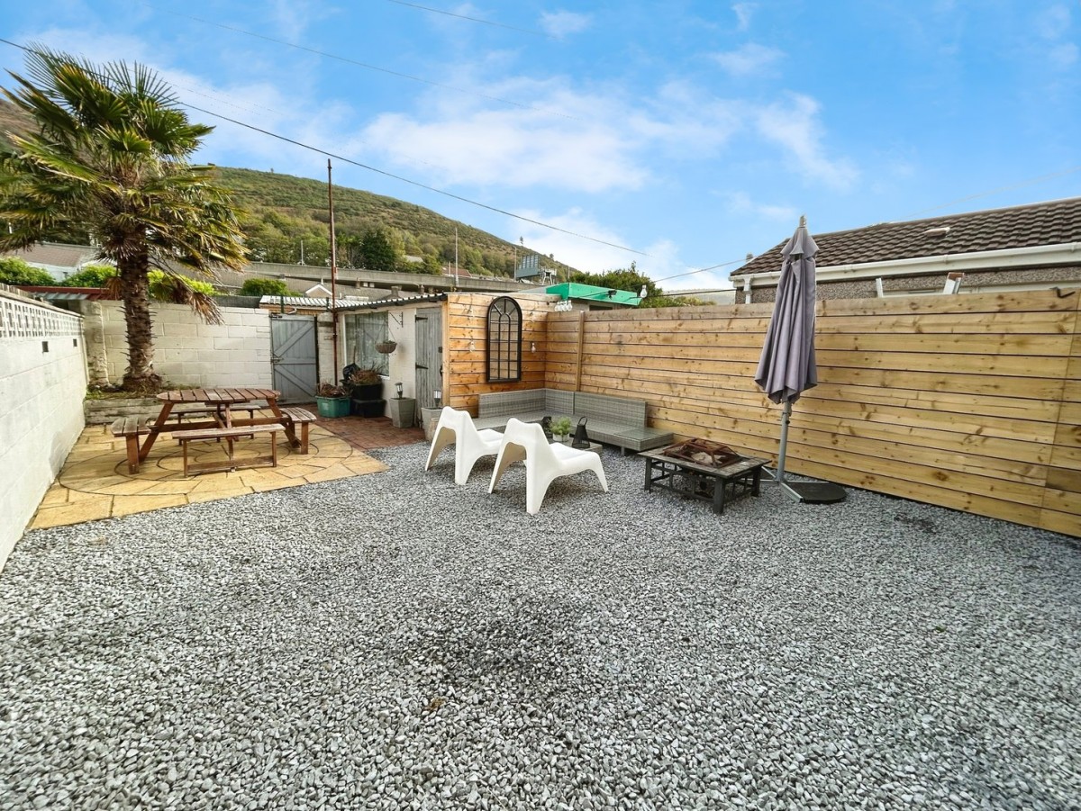 The rear garden is bound to three sides by block wall and wood fence with wooden gate leading to the rear lane access. The garden is laid mainly to gravel leading to a stone paved sun terrace, brick paved path leading to a block built shed with side wooden door and window. Established palm tree.