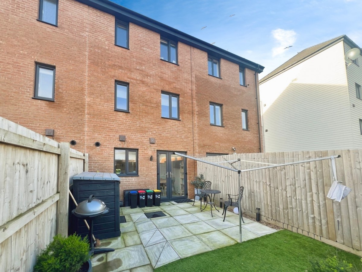 The rear the garden is enclosed and bounded on two sides by fence and the rear by wall and fence. Wooden rear gate giving access to the two allocated car parking spaces. Laid mainly to a patio slabs ideal for garden furniture and small Astroturf area.