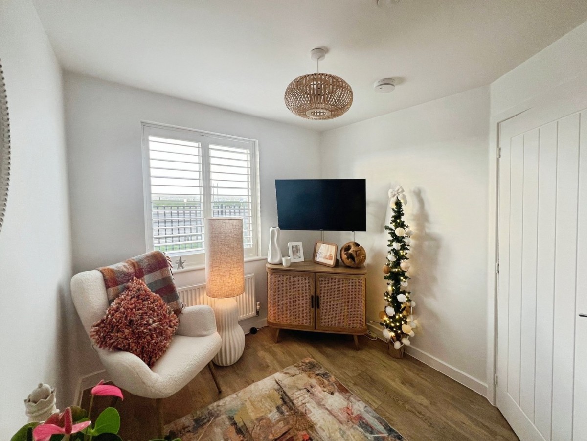 2.44m x 3.43m (8' 0" x 11' 3") Emulsioned ceiling and walls, PVC double glazed window overlooking the front of the property, radiator and a continuation of the vinyl floor.