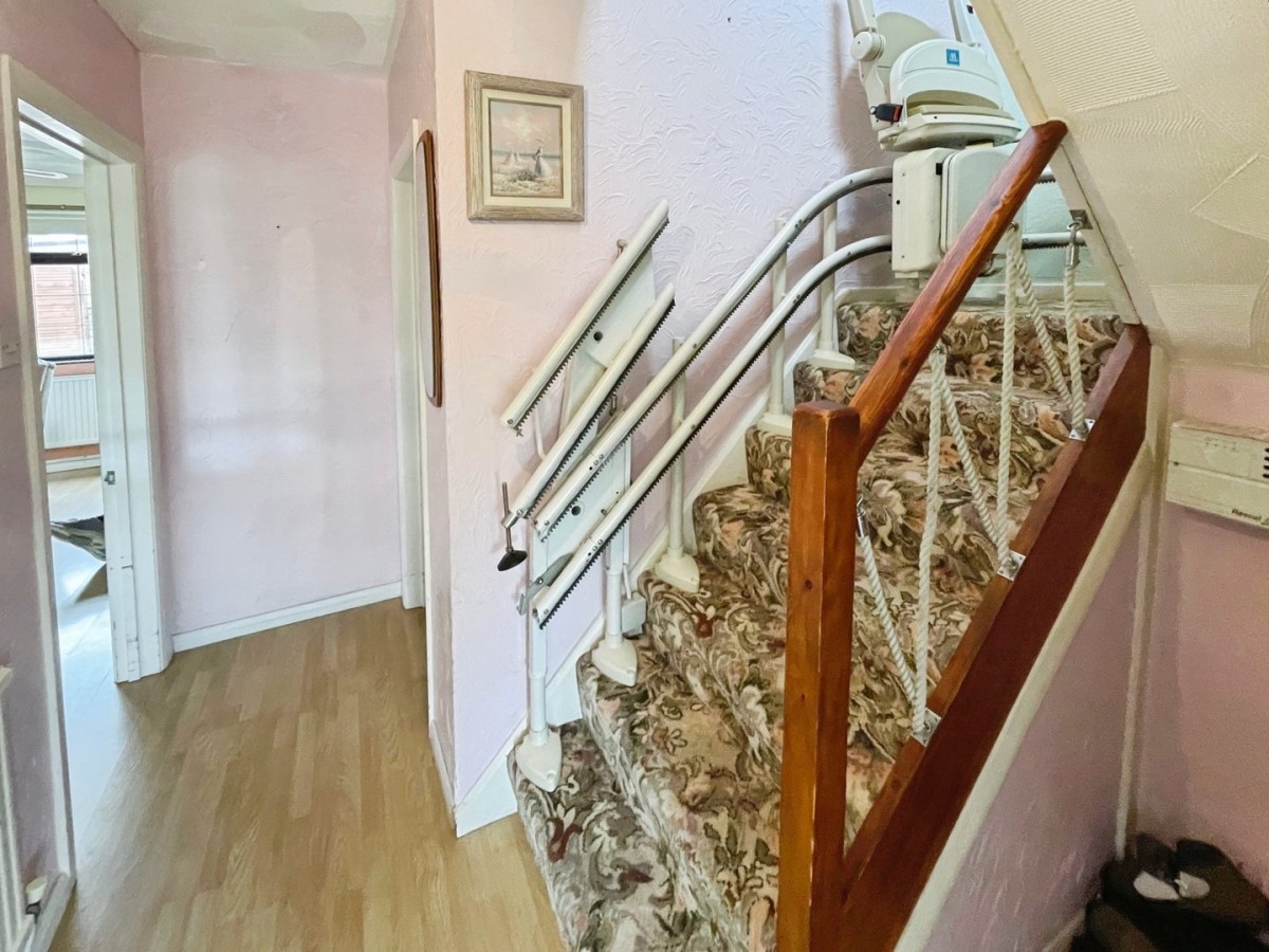 Emulsioned walls, radiator, laminate flooring and stairs leading to the first floor with under stairs storage cupboard. Doors leading to the lounge and kitchen.