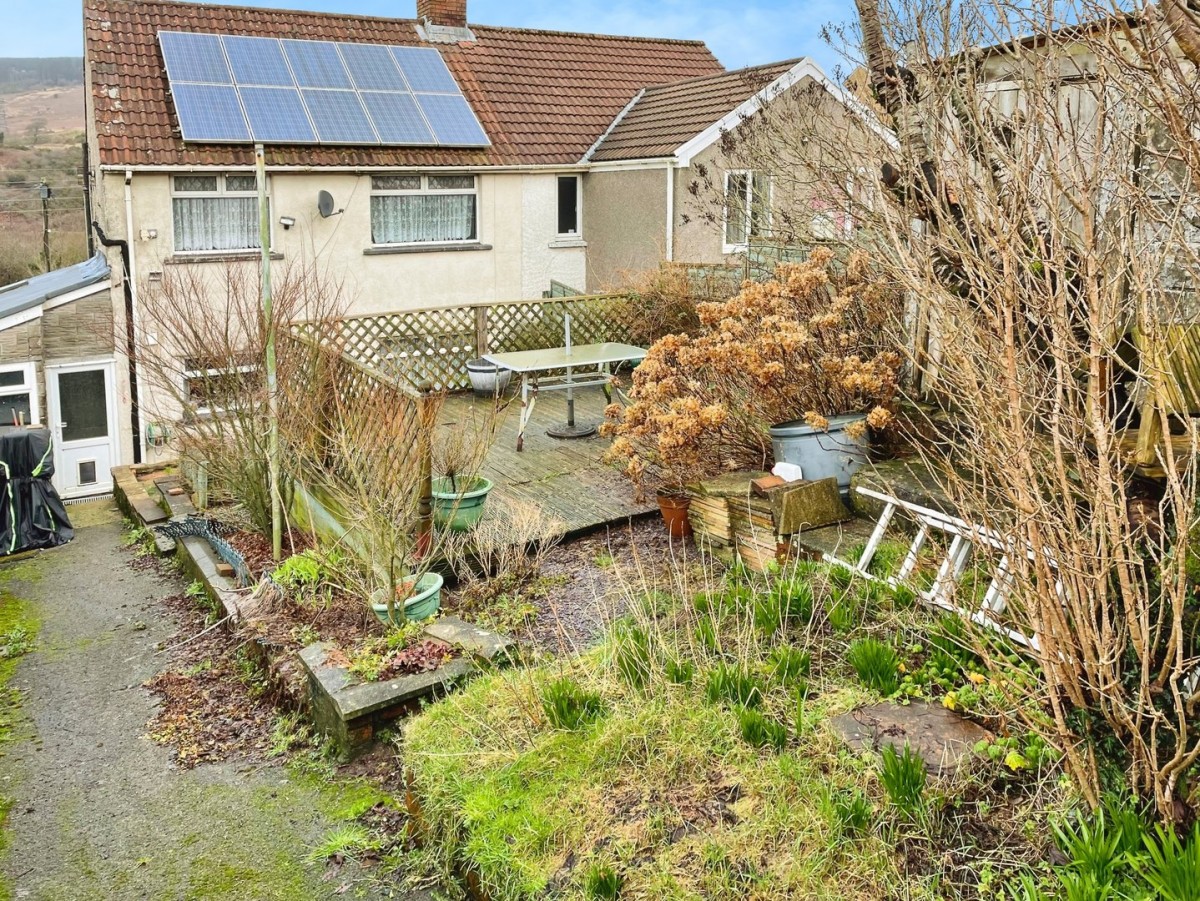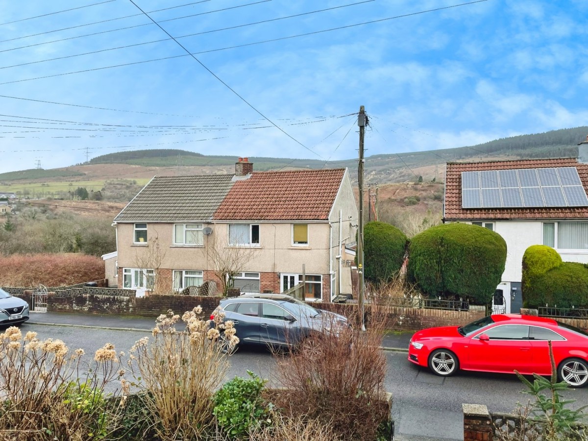 A semi-detached home located in the popular village of Bryn, Port Talbot. Set in a cull-de sac location with attractive views to front and rear, this property come highly recommended for viewing. Approached via steps leading to enclosed porch, hallway, doors leading to through lounge/ diner with fire place and a kitchen with fitted appliances giving access to the utility area and guest WC. To the first floor are three bedrooms and a shower room. Outside to the front is a garden with retaining wall and to the rear is a tiered garden with decking area , paved patio, shed and gate. With no upward chain, viewing comes highly recommended.