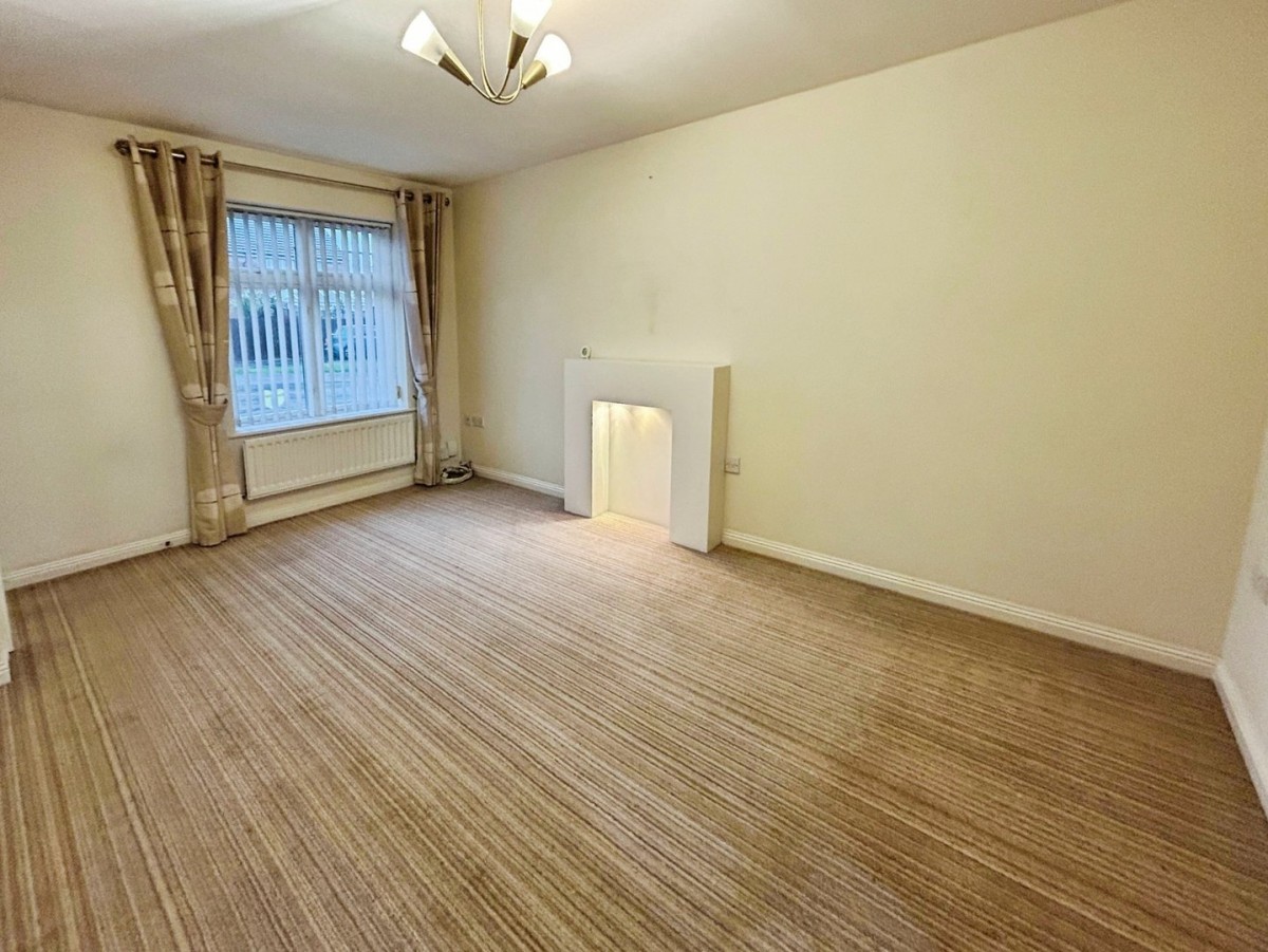 Emulsioned ceiling, pendant light, emulsioned walls, PVCu double glazed window overlooking the front of the property with fitted vertical blind, curtain pole and curtains, two radiators and fitted carpet. Under stair storage cupboard. Feature fire surround with inlet spot light. French doors into kitchen/diner.