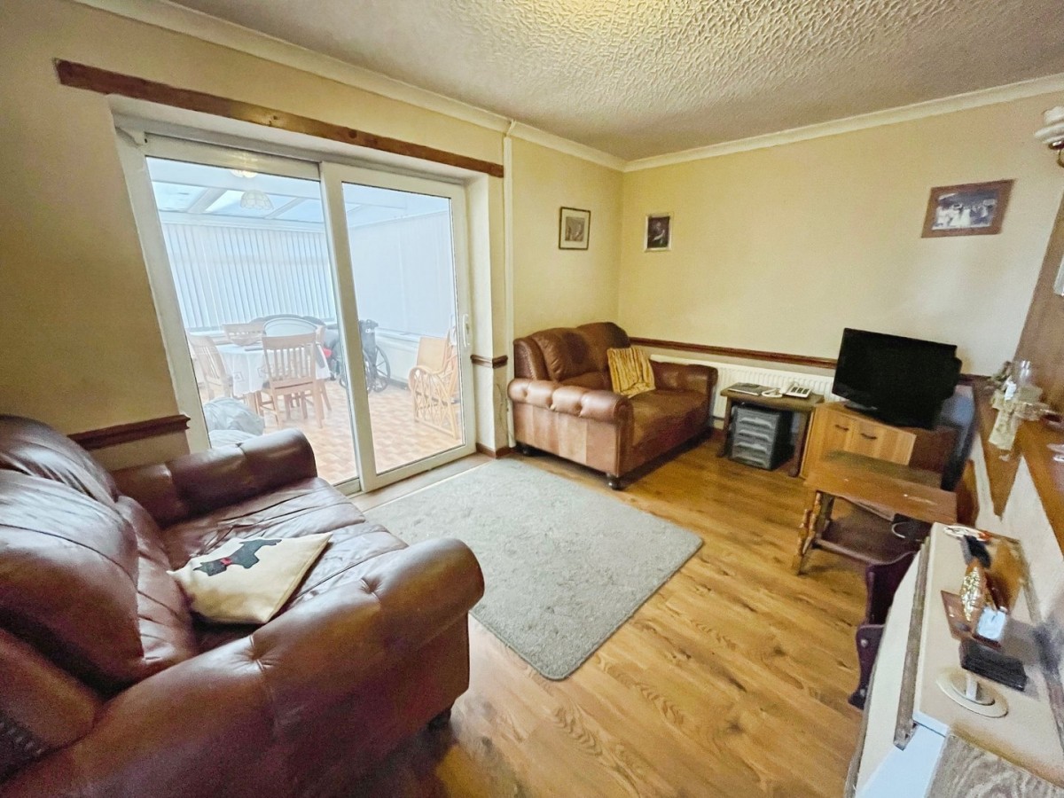 2.60m x 4.00m (8' 6" x 13' 1") PVCu double glazed sliding doors leading into the conservatory, radiator, part wood panelled / part papered walls, laminate flooring and two wall light points. Wall mounted electric fire with tiled surround. Door leading into the kitchen and PVCu patio doors leading into the conservatory.