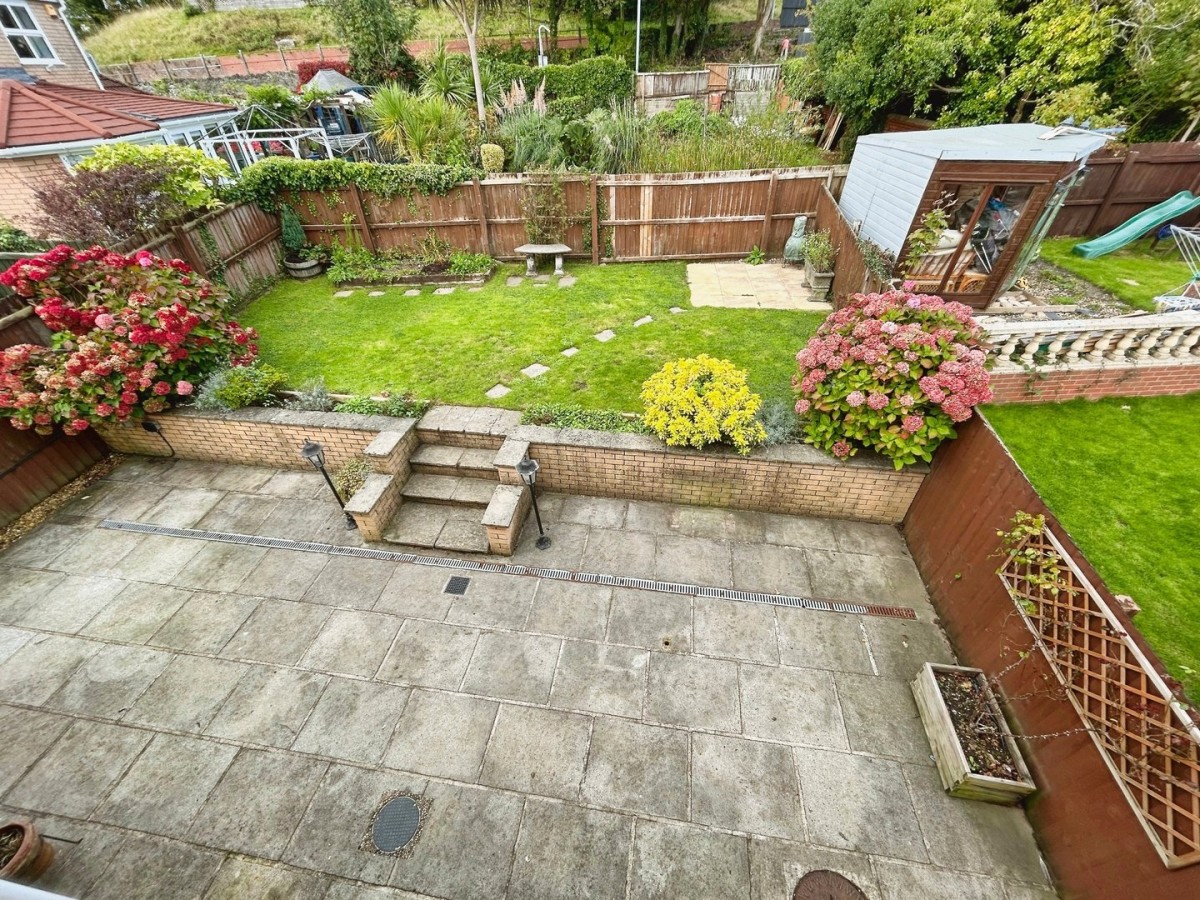 The rear garden is bounded by feather board fencing. Large sun terrace off the rear of the property. Steps up to the remainder of the garden which is laid to lawn with stone paved seating area and bordered with shrubs and plants. Side gated access to the front of the property.