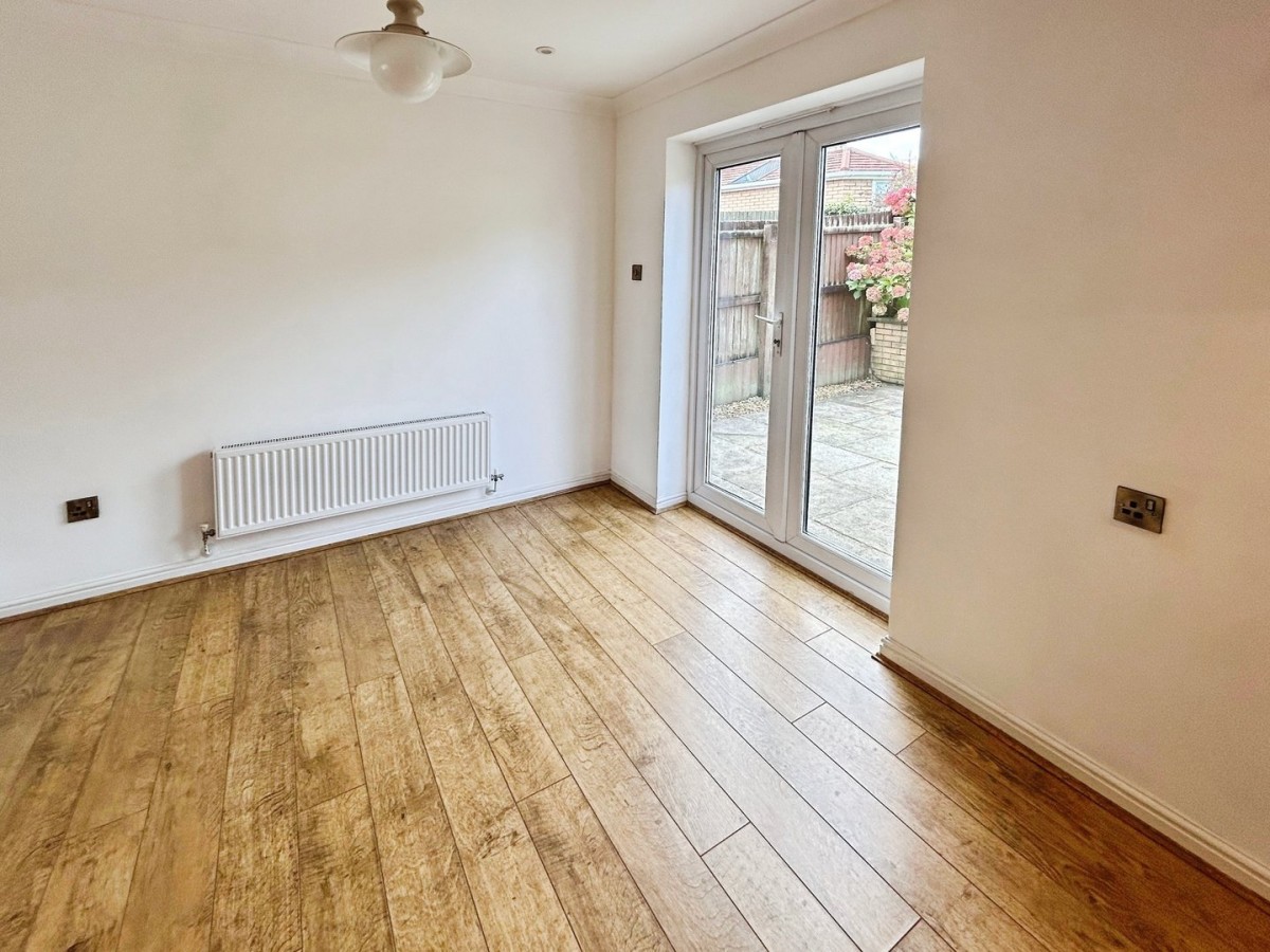 Measurements into the bay. Artexed and coved ceiling, pendant light, emulsioned walls, two radiators, timber framed square bay double glazed window overlooking the front of the property with fitted Venetian blinds. Timber framed double glazed window overlooking the side of the property with fitted Venetian blind and fitted carpet. Tiled hearth with inset living flame gas fire, wooden surround and mantle. Opening to kitchen/diner.