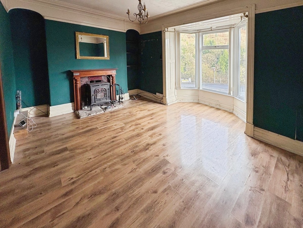 3.62m x 3.71m (11' 11" x 12' 2") Stippled and coved ceiling with ceiling rose and light, papered walls with picture rail, radiator, laminate flooring and PVCu double glazed box bay window overlooking the front of the property with lovely views over the Afan Valley.