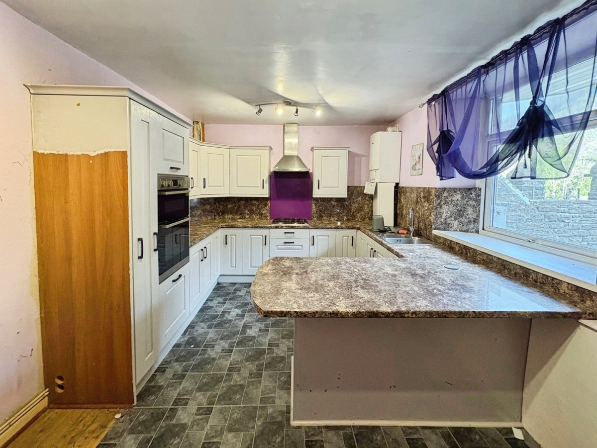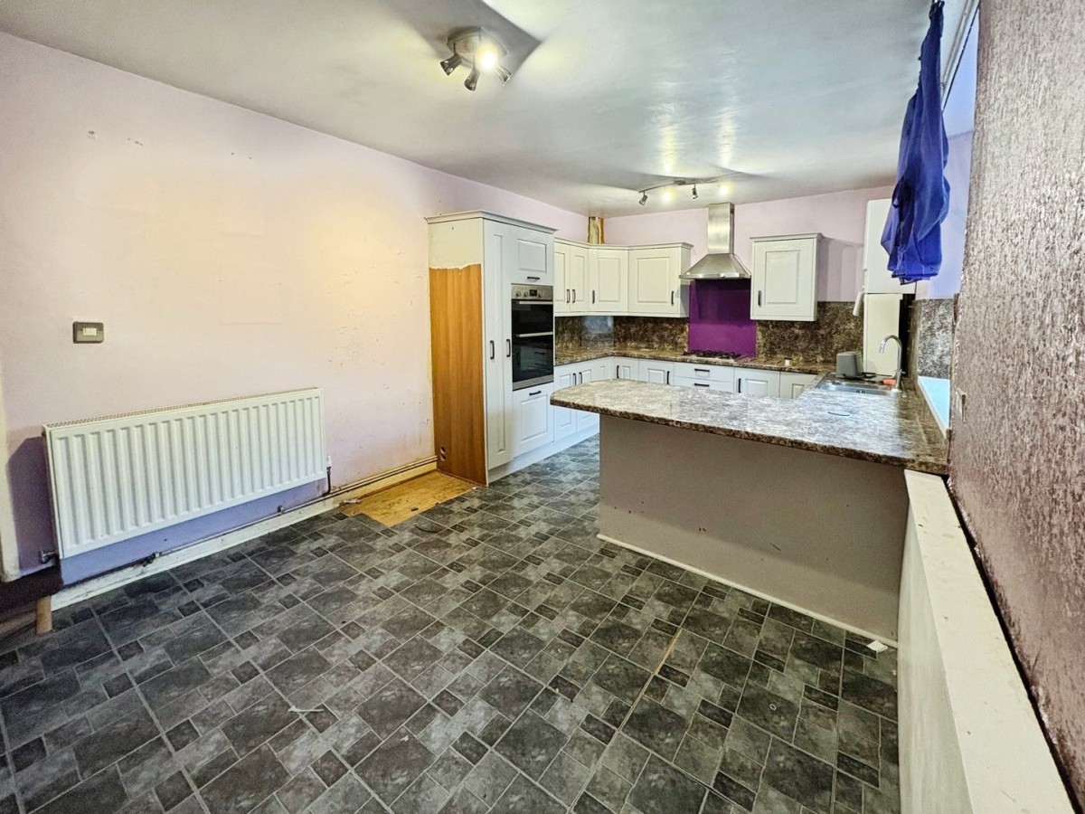 3.24m x 5.84m (10' 8" x 19' 2") Skimmed ceiling with ceiling light, papered walls, radiator and PVCu double glazed window overlooking the front of the property. A range of wall and base units in shaker style with coordinating work surfaces and matching up stands. Integrated appliances include double oven and four ring gas hob with overhead extractor. One and a half stainless steel sink with drainer and mixer tap and space for fridge/freezer. Wall mounted gas fired combination boiler and space for dining table and chairs. Timber door leading to the rear hallway with under stairs storage area and PVCu door leading out.