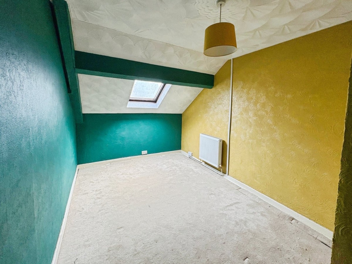 2.63m x 3.48m (8' 8" x 11' 5") Artexed ceiling, papered and artexed walls, radiator, timber framed skylight and fitted carpet.