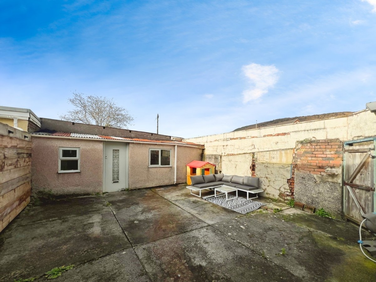 2.40m x 6.87m (7' 10" x 22' 6") Enclosed low maintenance rear garden laid to concrete with side gate giving access to the rear lane that leads to the garage. Outside tap. Block built storage shed 2.40m x 6.87m (7' 10" x 22' 6") with tin sheet roof, ply board ceiling, block walls, timber framed courtesy window and concrete flooring.