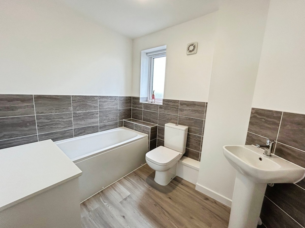 3.17m x 2.90m (10' 5" x 9' 6") Emulsioned ceiling. Pendant light. Emulsioned walls. PVCu double glazed window with fitted Venetian blind. Radiator. Wood effect LVT flooring. Bathroom 2.70m x 1.86m (8' 10" x 6' 1") Emulsioned ceiling. Flush light fitting. Emulsioned walls. Wall mounted heated towel rail. Frosted PVCu double glazed window with fitted roller blind. Room is fitted with a three piece suite comprising W.C., pedestal wash hand basin and walk in shower with wall mounted shower. Wood effect LVT flooring.