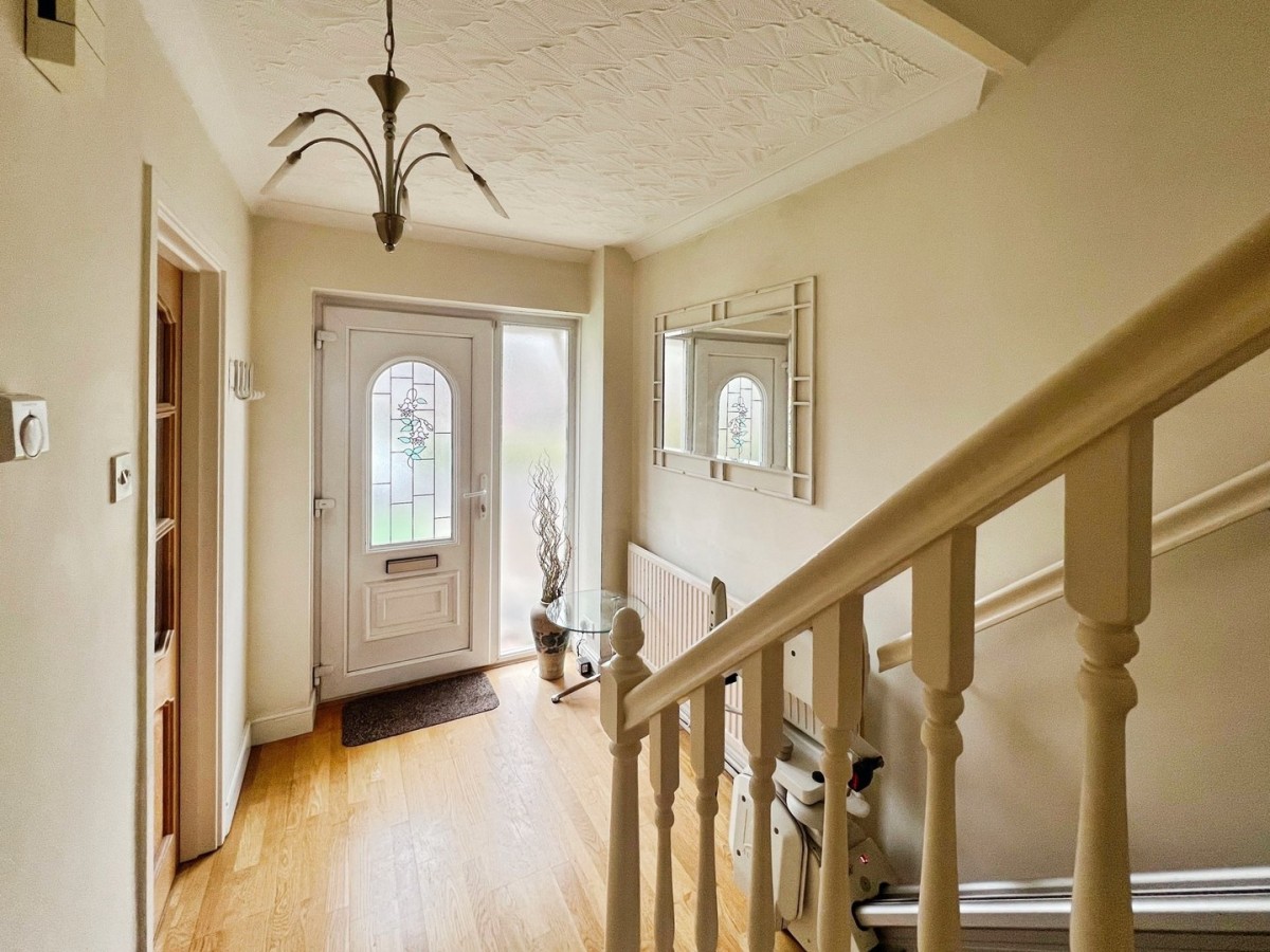 Via PVCu frosted part glazed front door leading into the entrance hall. Artexed and coved ceiling, emulsioned walls, radiator and wood effect laminate flooring. Stairs leading to first floor. All doors leading off.