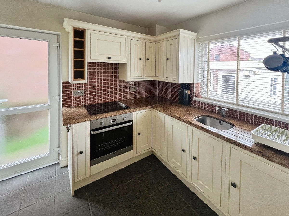 2.34m x 2.93m (7' 8" x 9' 7") Skimmed ceiling, emulsioned walls, PVCu double glazed window overlooking the rear of the property, PVCu frosted double glazed door to the side of the property leading out to the rear garden and tiled flooring. A range of wall and base units with complementary work surfaces. Stainless steel inset sink. Built in four ring induction hob with overhead extractor hood and oven below. Integrated fridge. Door to under stairs storage.