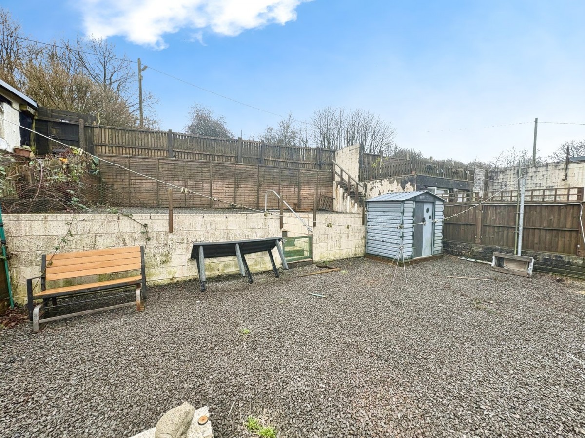 Enclosed rear garden split over three tiers with gated access to the front of the property. The lower level has access to an outside water tap, stairs lead up to a low maintenance second and and third tier laid to stone chippings and bound by fencing. Gated access to the rear lane.