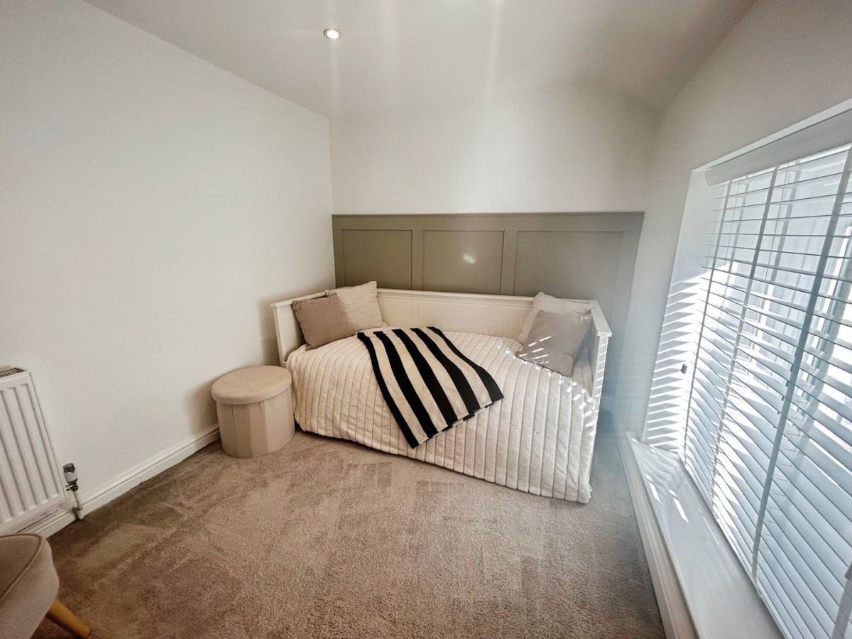 2.07m x 2.80m (6' 9" x 9' 2") Emulsioned ceiling with inset spot lights, emulsioned walls, PVCu double glazed window overlooking the front of the property with fitted Venetian blind, radiator and fitted carpet.