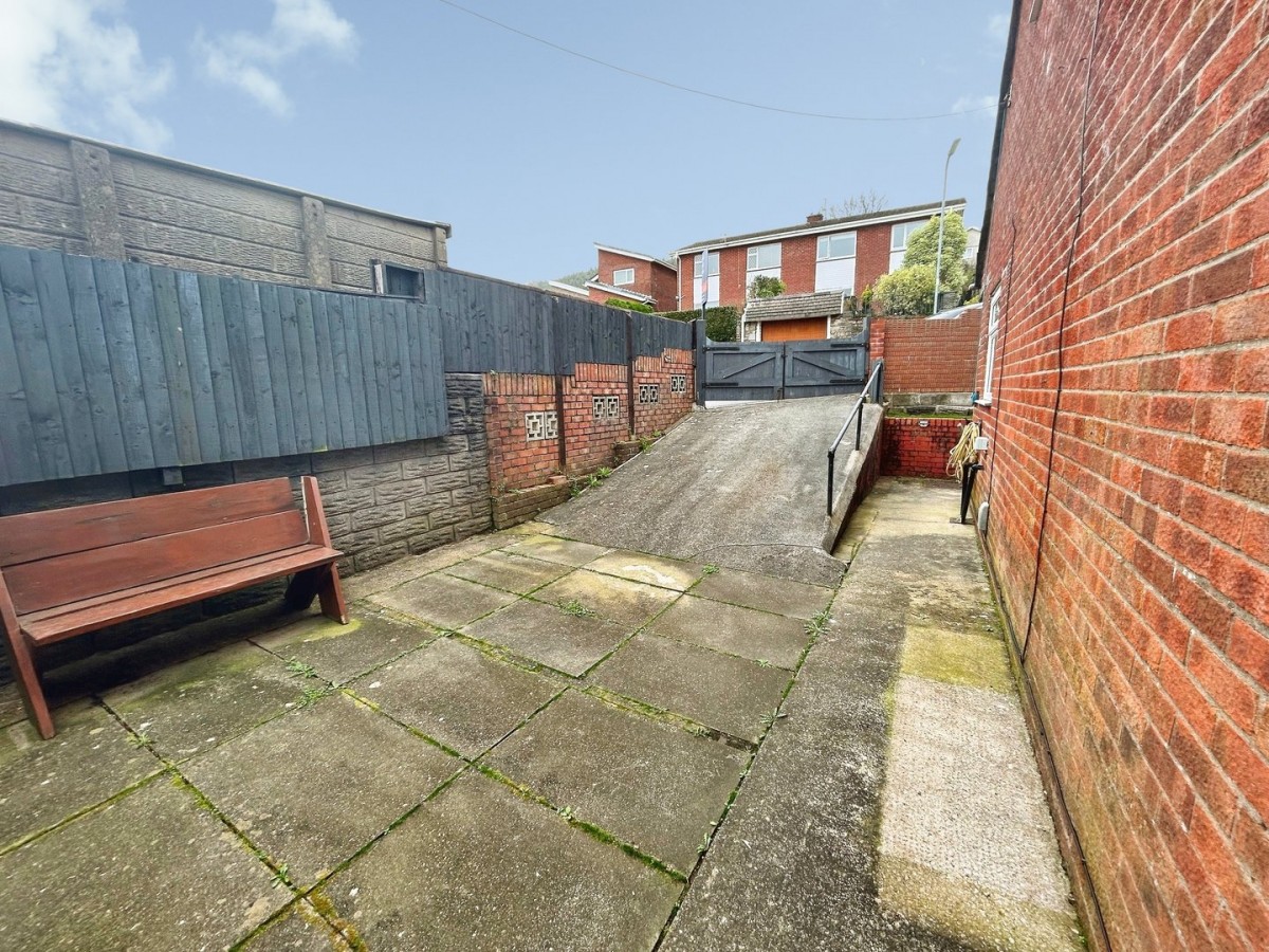 The rear garden is bound by wall to three sides, side wooden gate leading to the side garden and to the rear. Wooden gates giving access to off road parking with hardstanding. Raised area laid to Astroturf and steps leading up to a further wooden gate giving access to the rear lane. Outside tap.