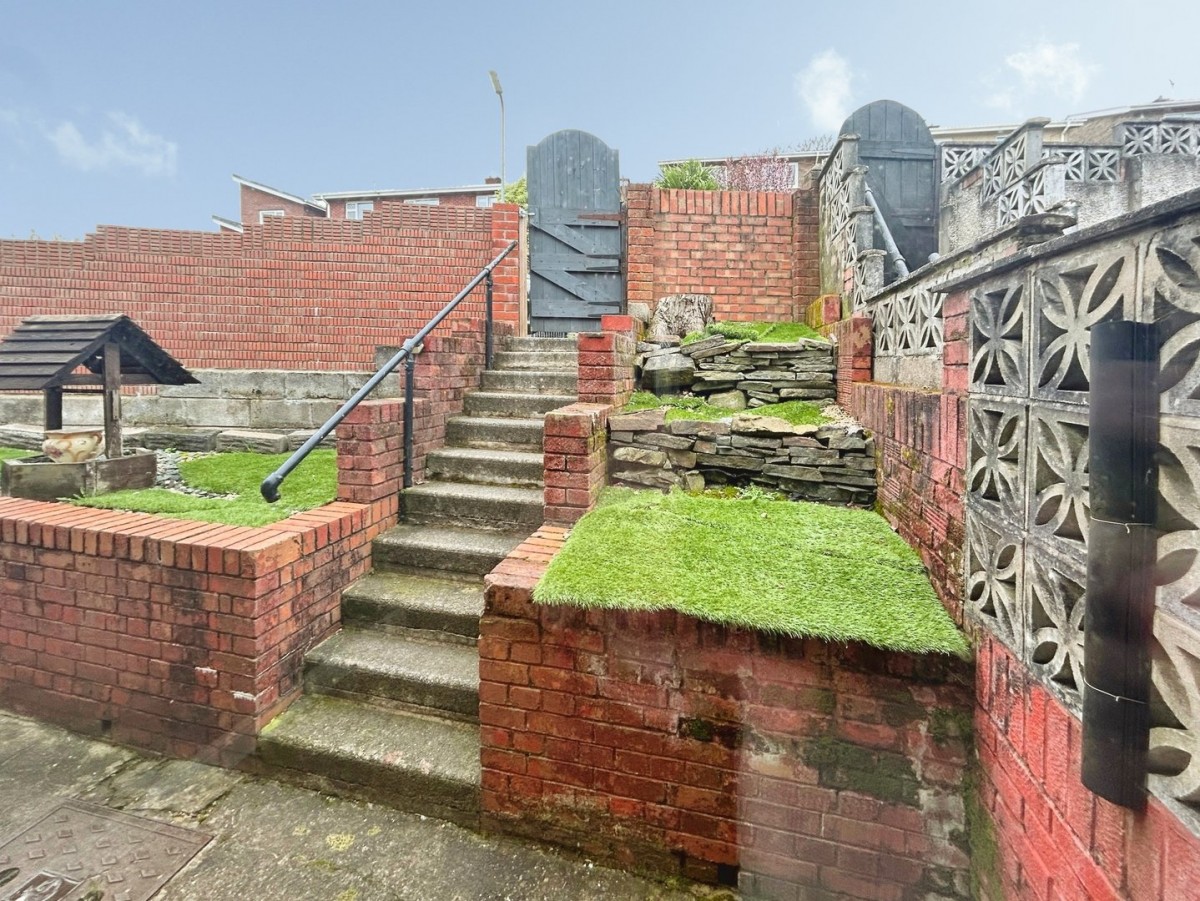 The front garden is bound to three sides by low level wall with pedestrian gate giving access to the footpath leading up to the front door. Astroturf to both sides, hedge borders and small picket fence. Side gate giving access to the rear garden.