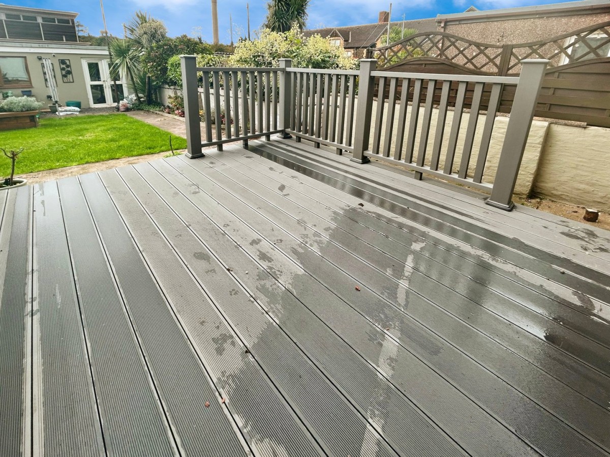 Outside The front garden is bound to three sides by brick and stone wall, tarmac and stone path leading to the front door and side of the property. Laid mainly to lawn with planted border of shrubs. The rear garden is bound by rendered wall, grey composite decked area directly off the house leading to a concrete path to the traditional garage with electric garage door, courtesy PVCu door from the garage to garden and lane access. The garden is laid mainly to lawn with beds of planted shrubs and trees.