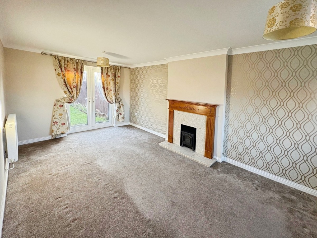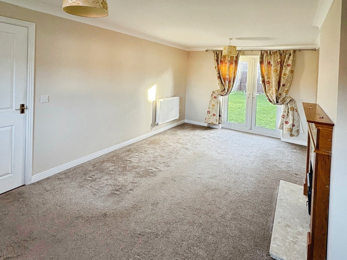 3.11m x 5.59m (10' 2" x 18' 4") Skimmed, emulsioned and coved ceiling with two ceiling lights, skimmed and emulsioned walls, two radiators and fitted carpet. Dual aspect PVCu double glazed windows to the front and PVCu double glazed French doors leading to the rear garden. The focal point of the room is the fireplace with wooden mantle and marble hearth and surround with space for an electric fire.