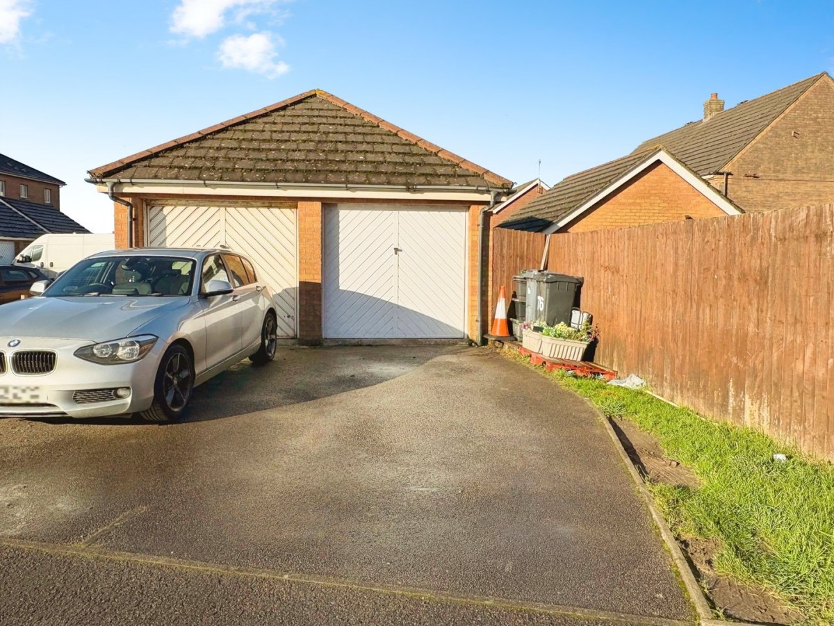 The front garden is laid to lawn with steps leading to the front door. Car parking space and garage accessed via an up and over door located adjacent to the property.
