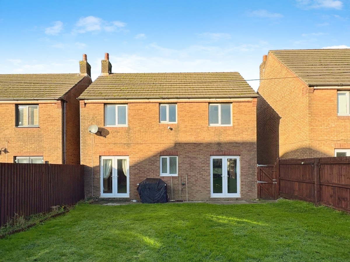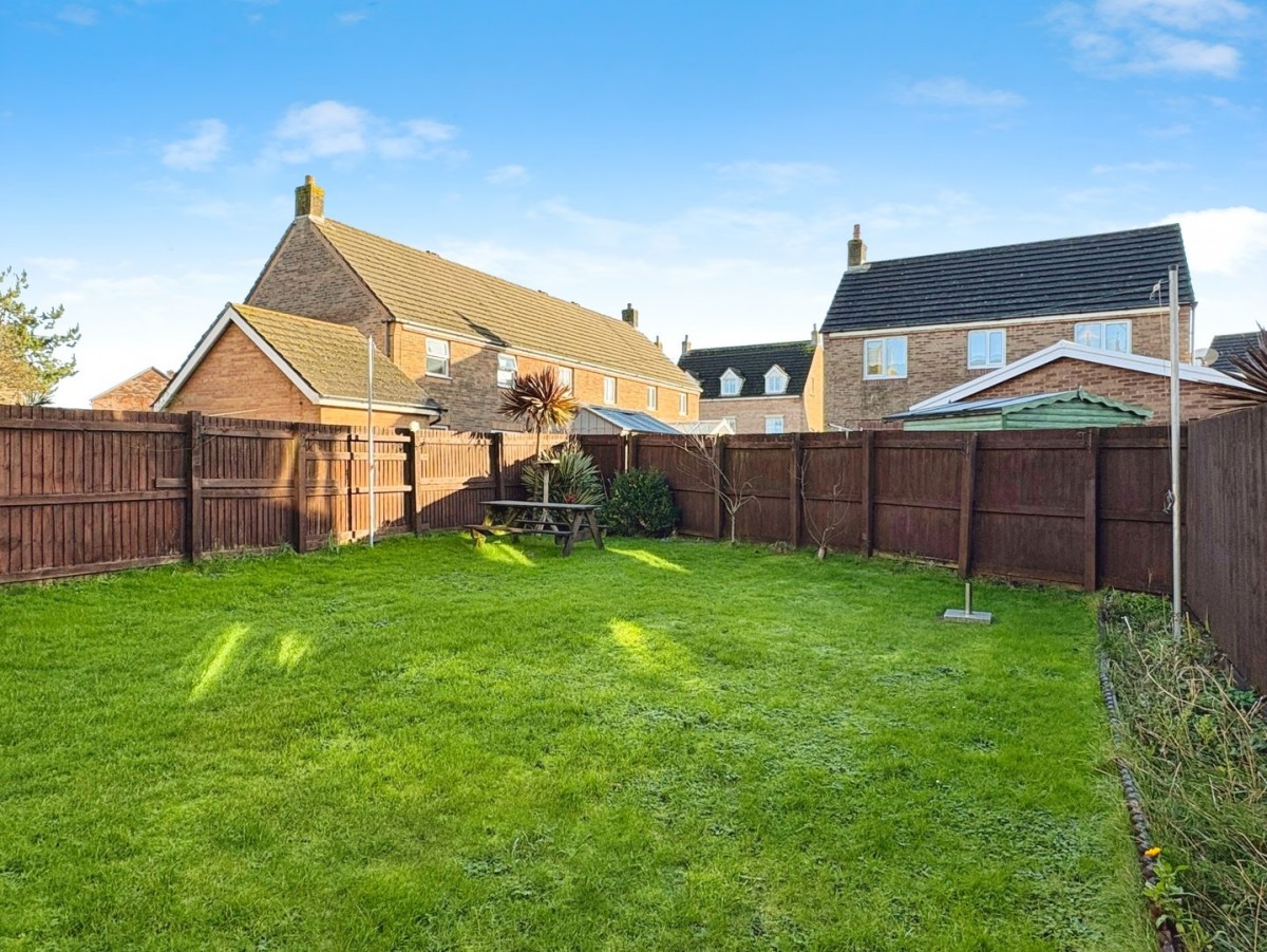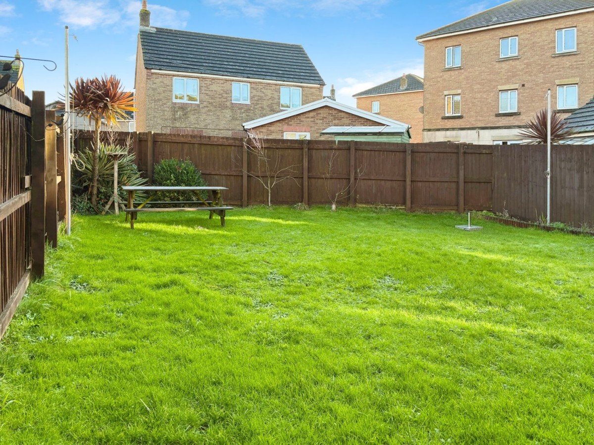 Enclosed rear garden bound by panel fencing, laid mainly to lawn with borders for shrubs and planting. Area laid to patio, outside water tap and gated access to the front of the property.