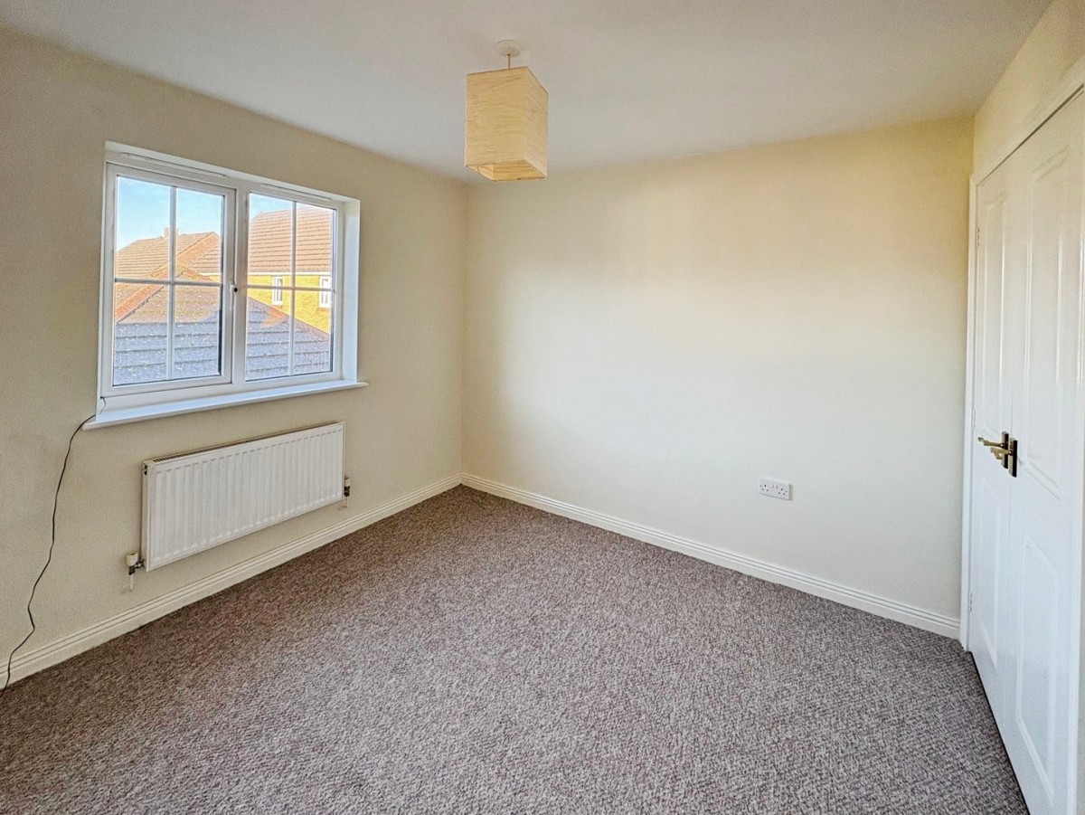 3.25m x 4.79m (10' 8" x 15' 9") measurements narrow to 3.21m. Skimmed and emulsioned ceiling, skimmed and emulsioned walls, radiator, PVCu double glazed window overlooking the rear and fitted carpet. Built in wardrobe with double doors and further cupboard for storage. Door leading to the en suite.