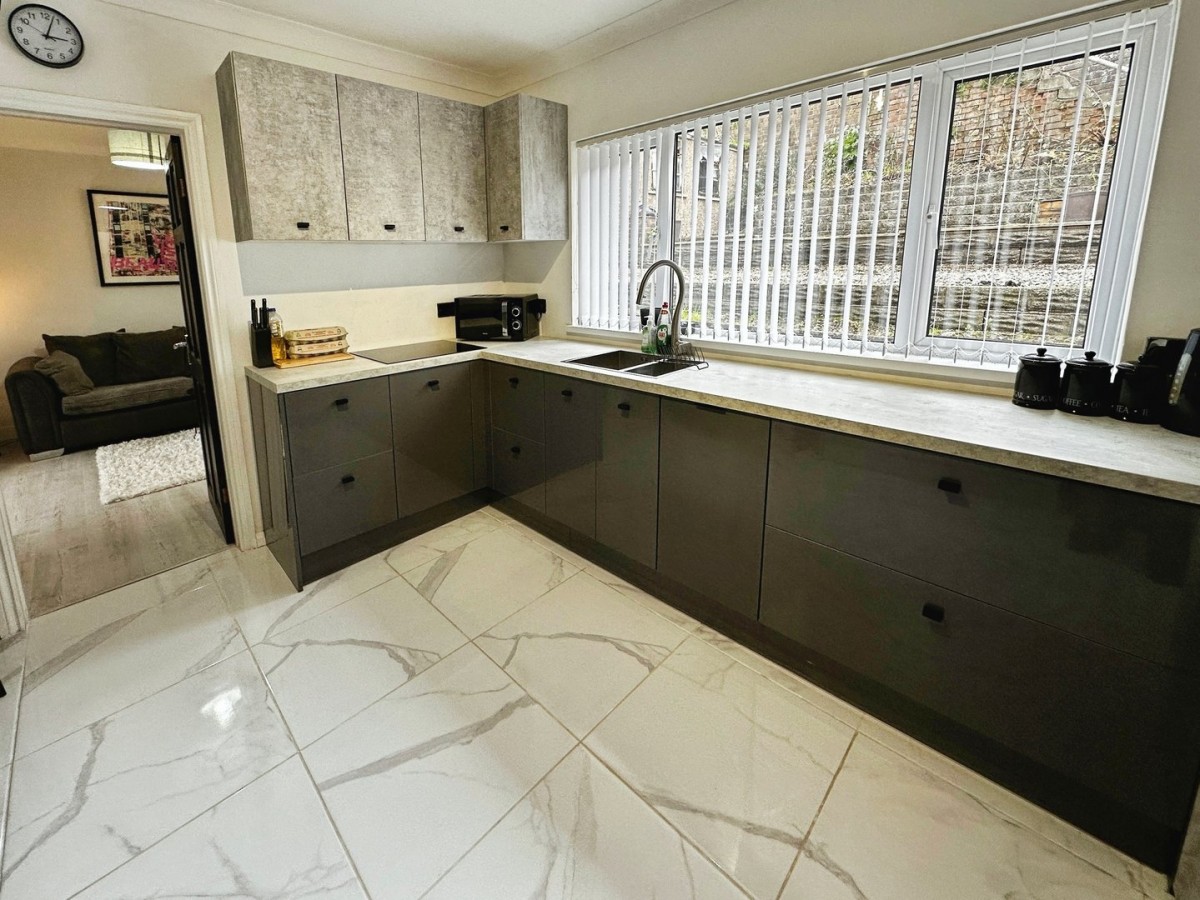 3.03m x 3.15m (9' 11" x 10' 4") Window to the rear, radiator and Italian style flooring . A range of matching wall and base units, breakfast bar, integrated electric hob and oven with cooker hood above and stainless steel one and half bowl sink drainer. Door leading to the rear garden.