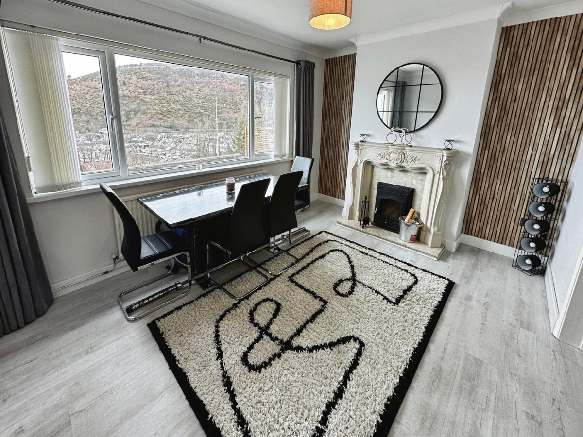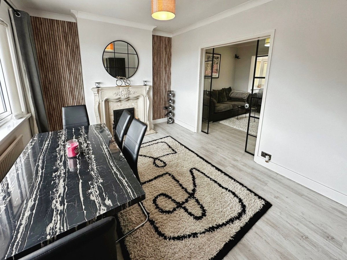 3.70m x 4.28m (12' 2" x 14' 1") Bay window to the rear, radiator and laminate flooring. Door leading into the kitchen.