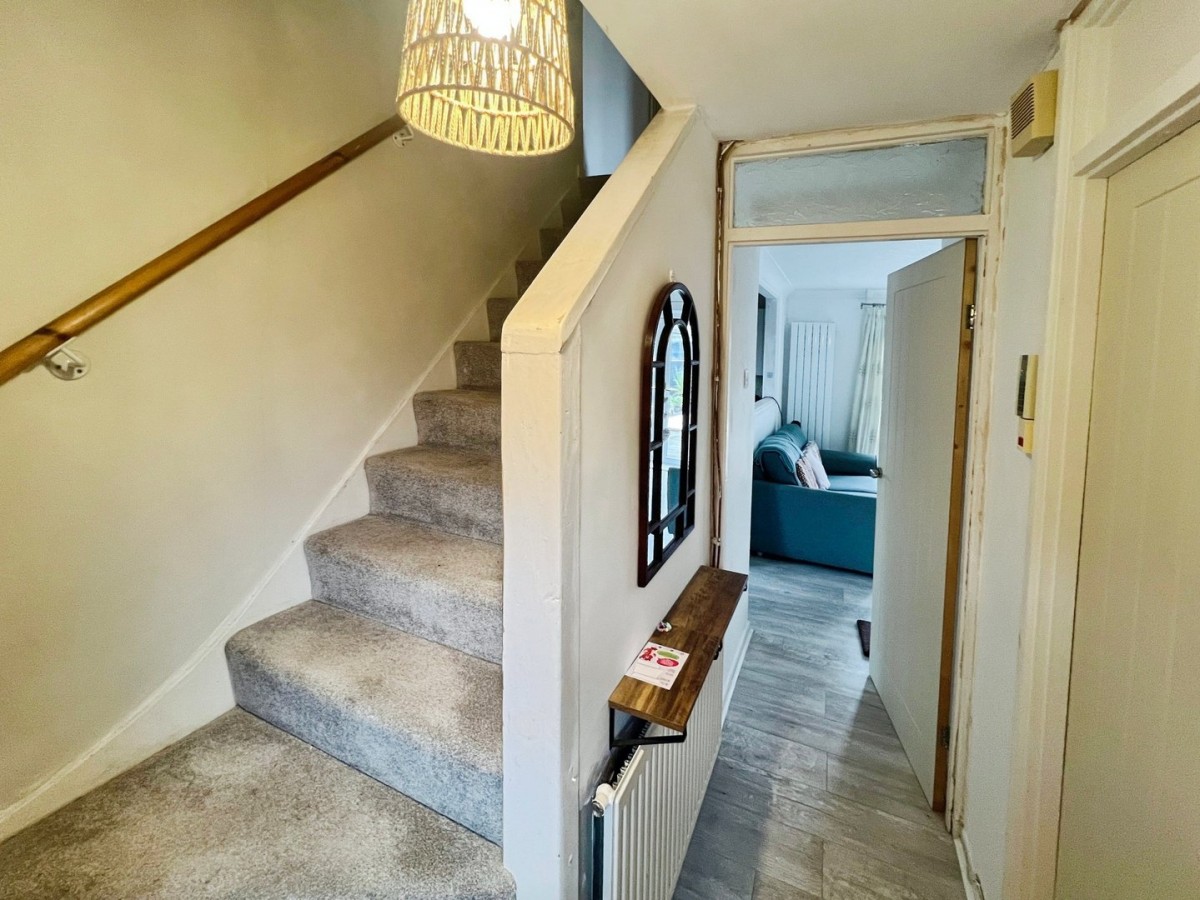 Accessed via PVCu double glazed door. Skimmed ceiling, emulsioned walls, radiator and grey wood effect laminate flooring. Stairs leading to the first floor. Door leading into the lounge.