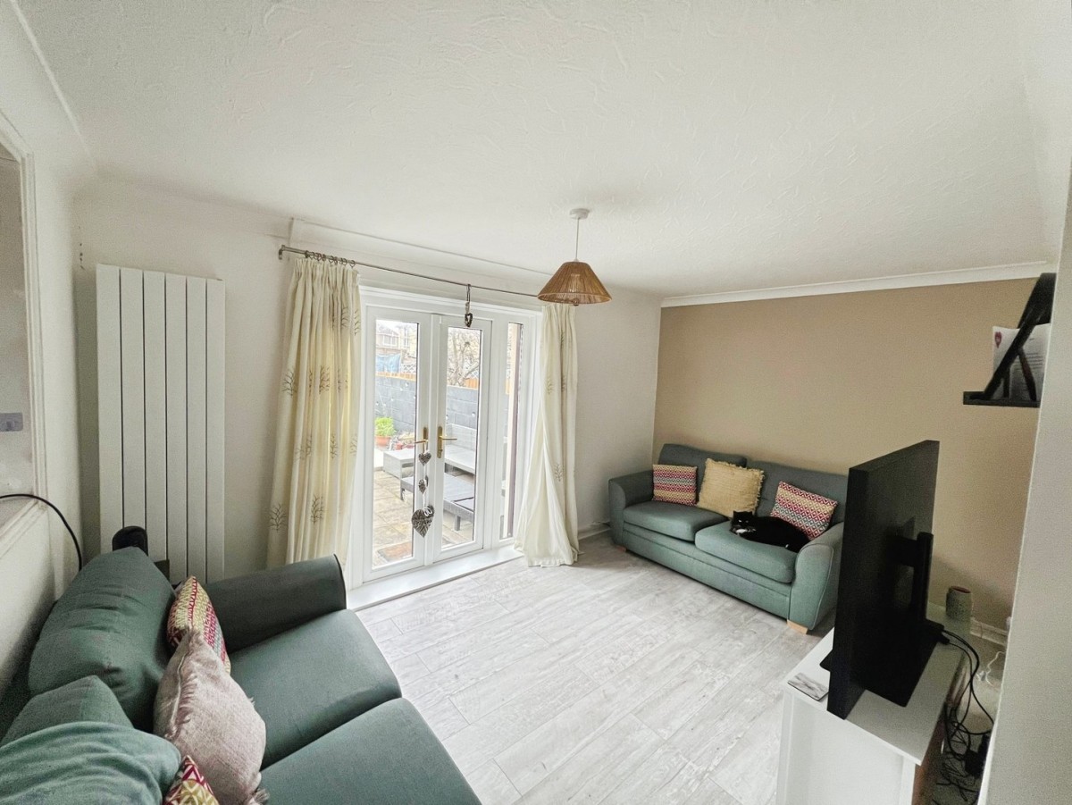 3.20m x 4.60m (10' 6" x 15' 1") Papered ceiling, emulsioned walls, PVCu double glazed patio doors leading to the rear garden, radiator, continuation of laminate flooring and opening into the kitchen.