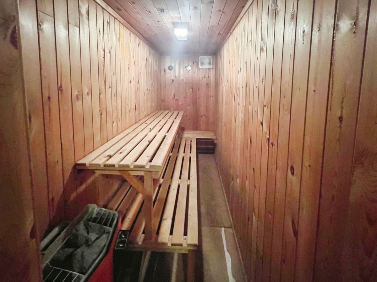 Papered ceiling, floor to ceiling ceramic tiled walls, a continuation of the vinyl flooring and door leading to the pantry. Opening and step down to the utility area.