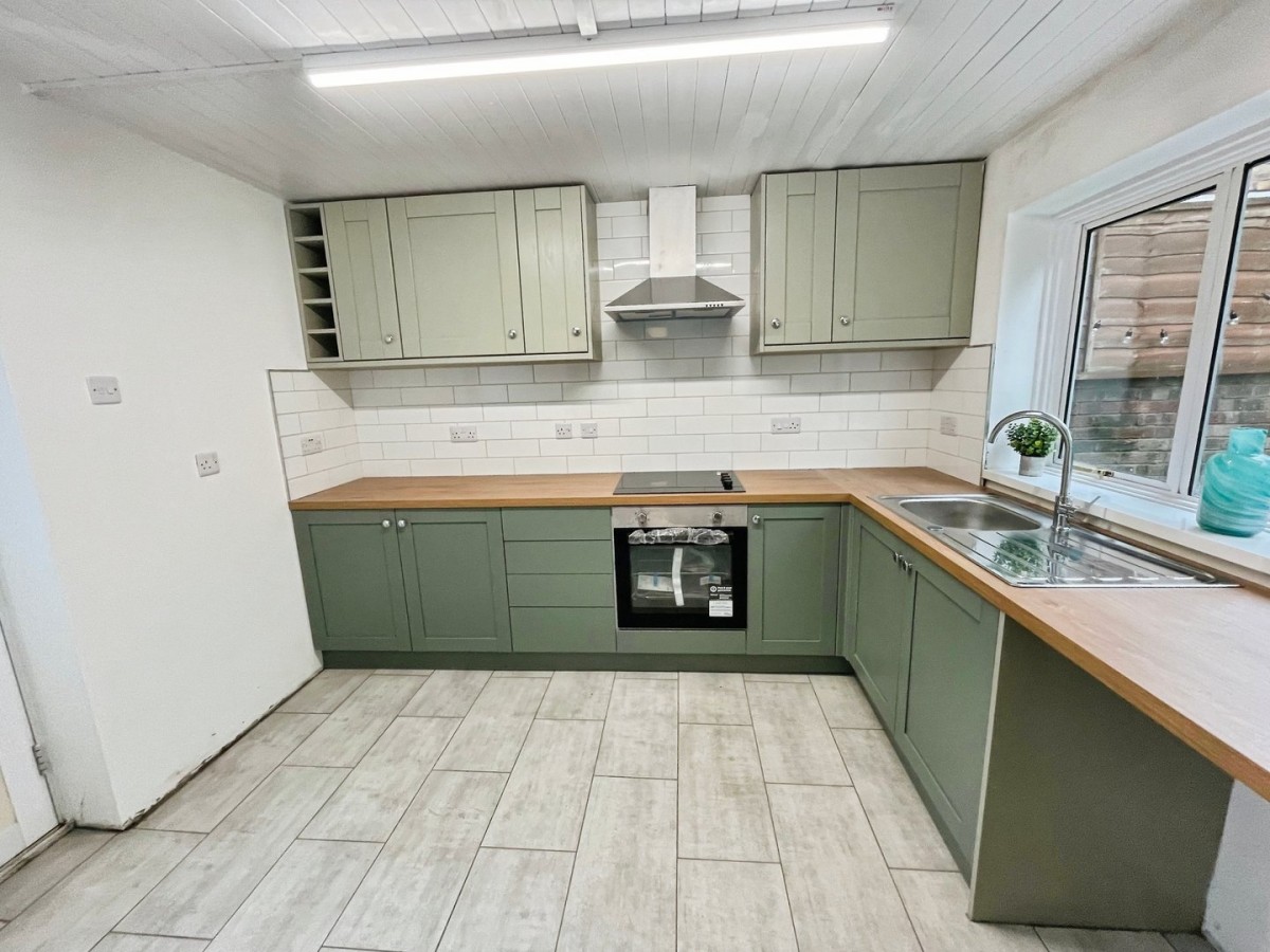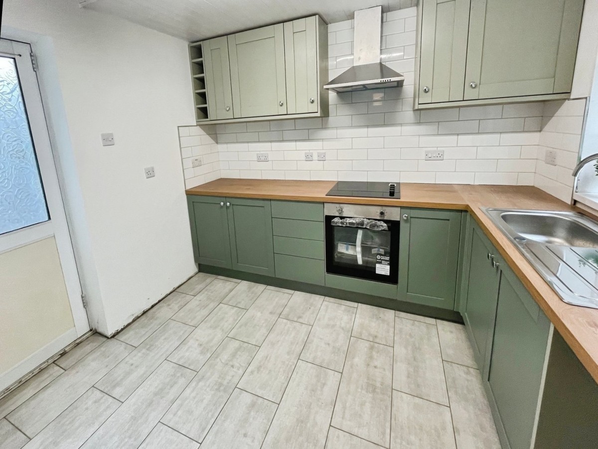 3.10m x 3.57m (10' 2" x 11' 9") max. Aluminium framed double glazed opaque door leading to the rear garden, radiator, aluminium framed double glazed opaque door leading to the front. Emulsioned walls with tiling to the splash backs and tiled flooring. Newly fitted kitchen with a range of matching wall and base units with complementary work surfaces housing a stainless steel sink with single drainer and integrated electric oven and hob. Double glazed aluminium window to the rear and space for washing machine and fridge.