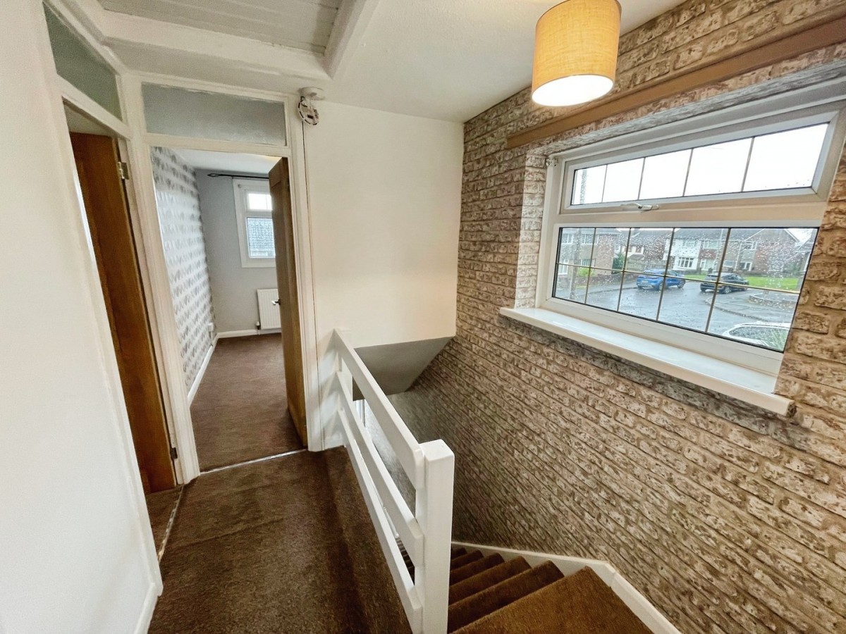 Via stairs fitted carpet and balustrade. PVCu double glazed window to the side, loft access and emulsioned walls with one feature papered wall. Doors leading off.