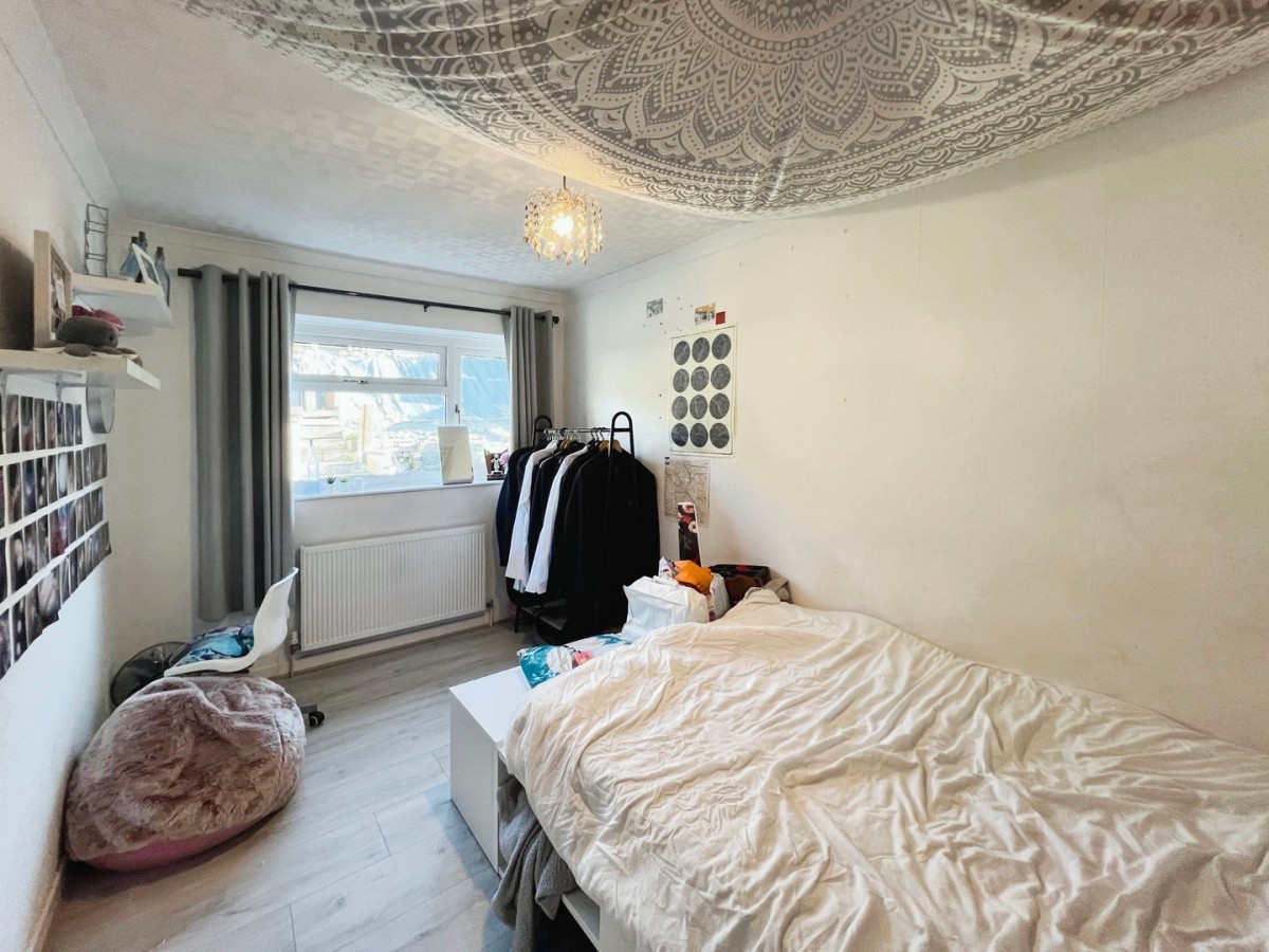 3.48m x 2.43m (11' 5" x 8' 0") 3.48m to the fitted wardrobes. Papered ceiling. Coved. Papered walls. Front facing PVCu double glazed window. Radiator. Grey laminate flooring. Built in wardrobes.