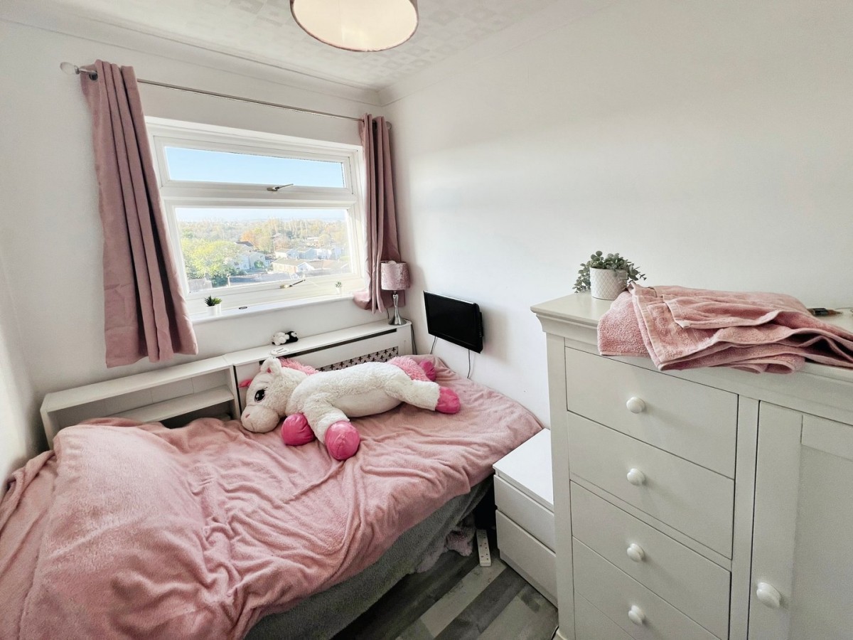 2.61m x 1.85m (8' 7" x 6' 1") Papered ceiling. Coved. Papered walls. Front facing PVCu double glazed window. Radiator. Grey laminate flooring. Outside To the front the garden is elevated.
