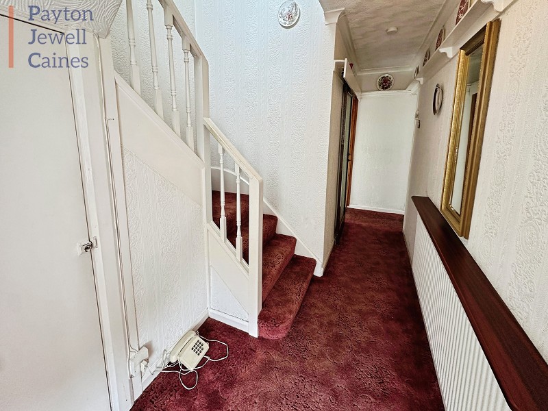Via double glazed aluminium front door with a fitted roller blind into the entrance hall finished with papered and coved ceiling, papered walls, high level picture shelf, skirting and fitted carpet. Under stair storage with a glazed panel to the front and housing the electrics. Door through into the kitchen.