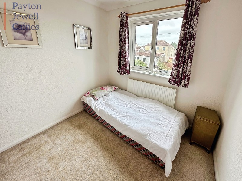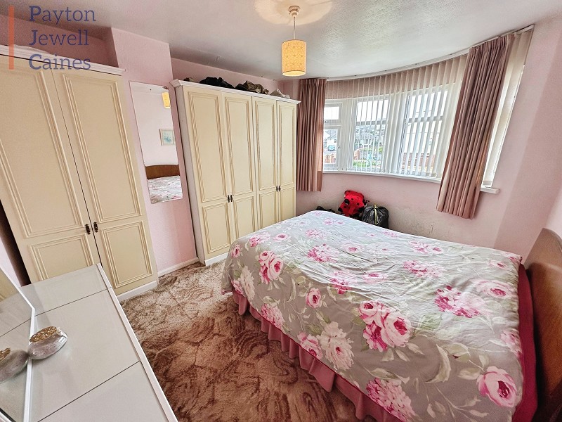 Overlooking the front via PVCu double glazed bay window with a fitted vertical blind and finished with papered ceiling and walls, skirting and fitted carpet.