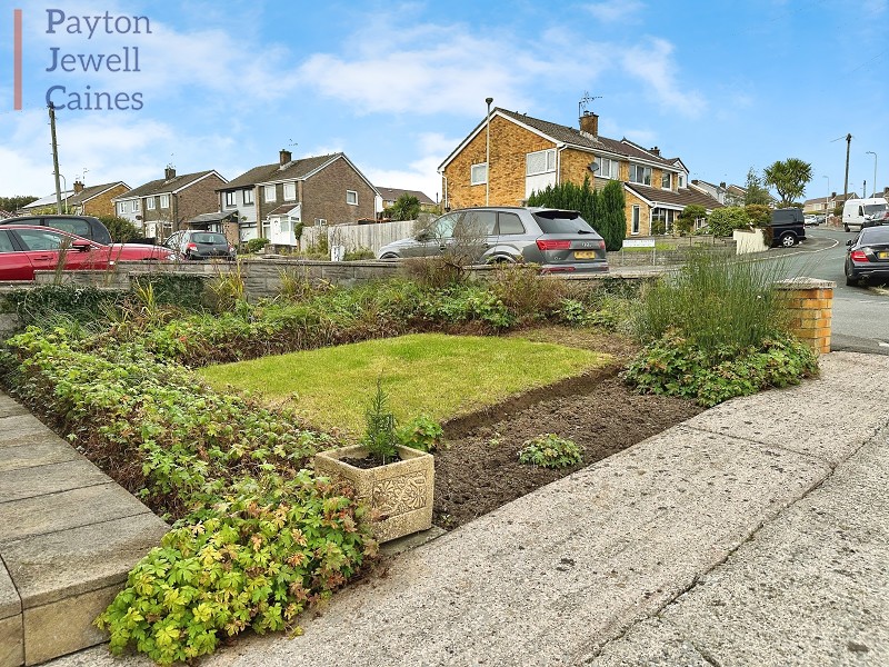 Enclosed front garden laid to lawn with mature trees and shrubs to the perimeter. Concrete driveway suitable for parking up to five cars.